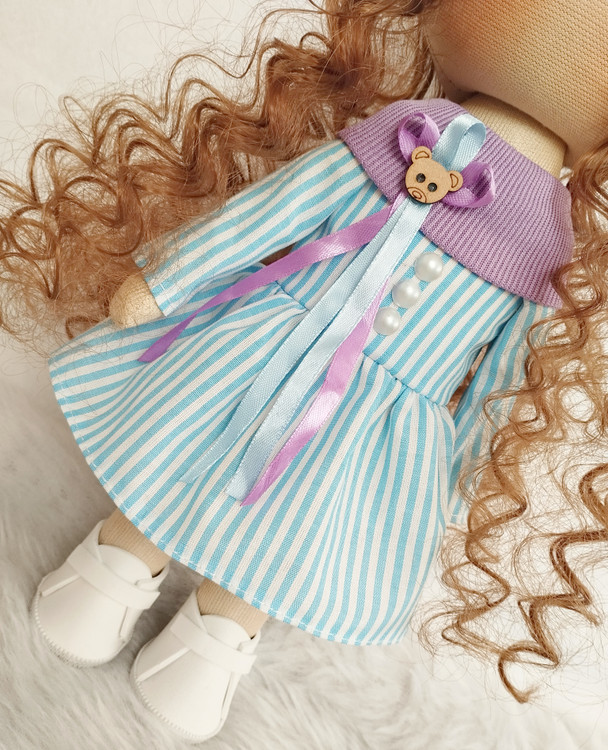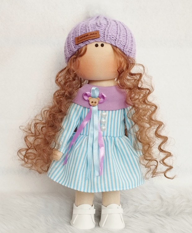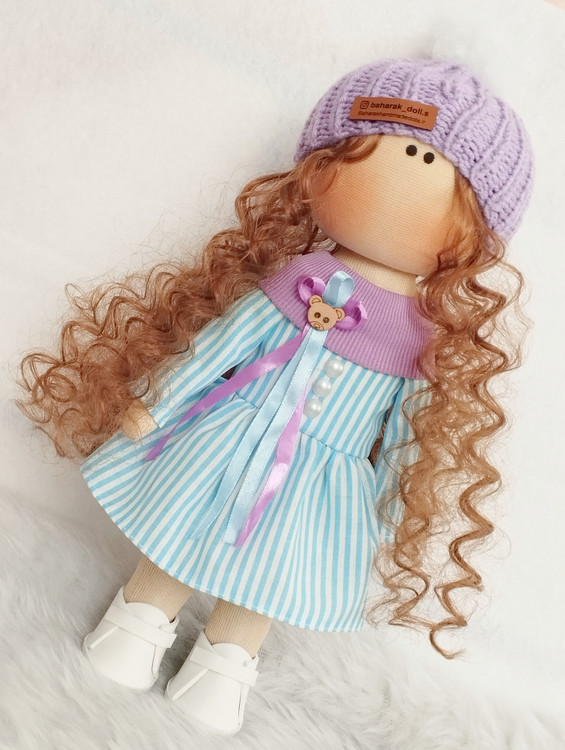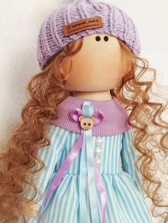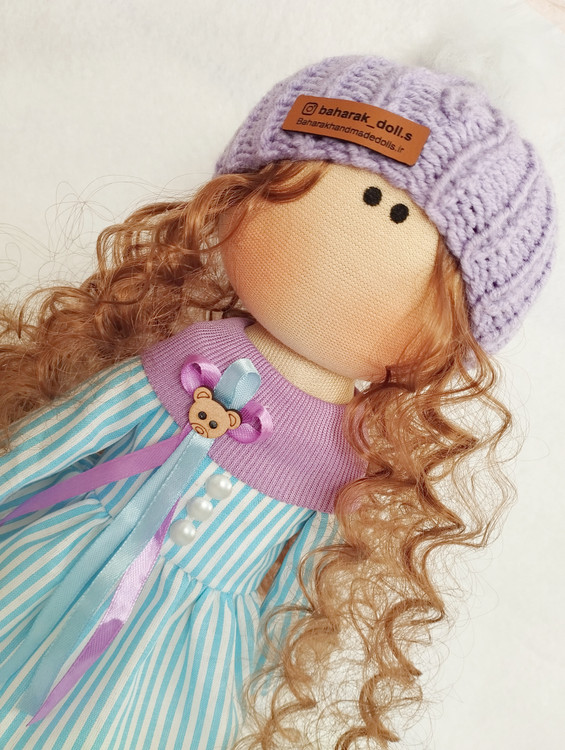 💜عروسک روسی دخترانه سرچرخشی مدل پیراهن آبی و کلاه بنفش🩵