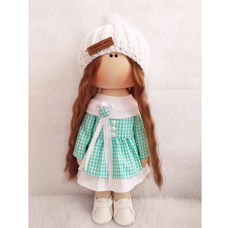 🤍عروسک روسی دخترانه 30سانتی سرچرخشی مدل سفید و سبز تیفانی💚(ارسال رایگان)
