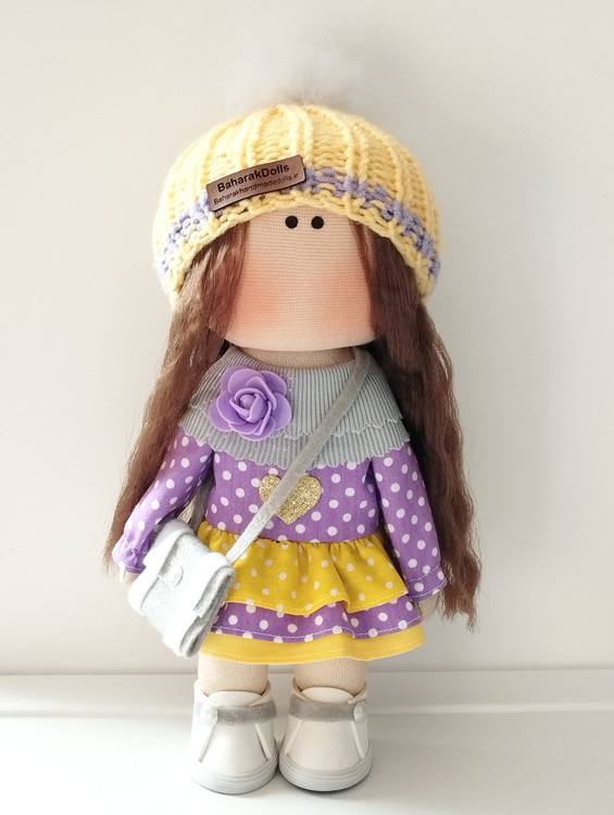 🩵عروسک روسی دخترانه سرچرخشی مدل پیراهن زردو بنفش💜(ارسال رایگان)
