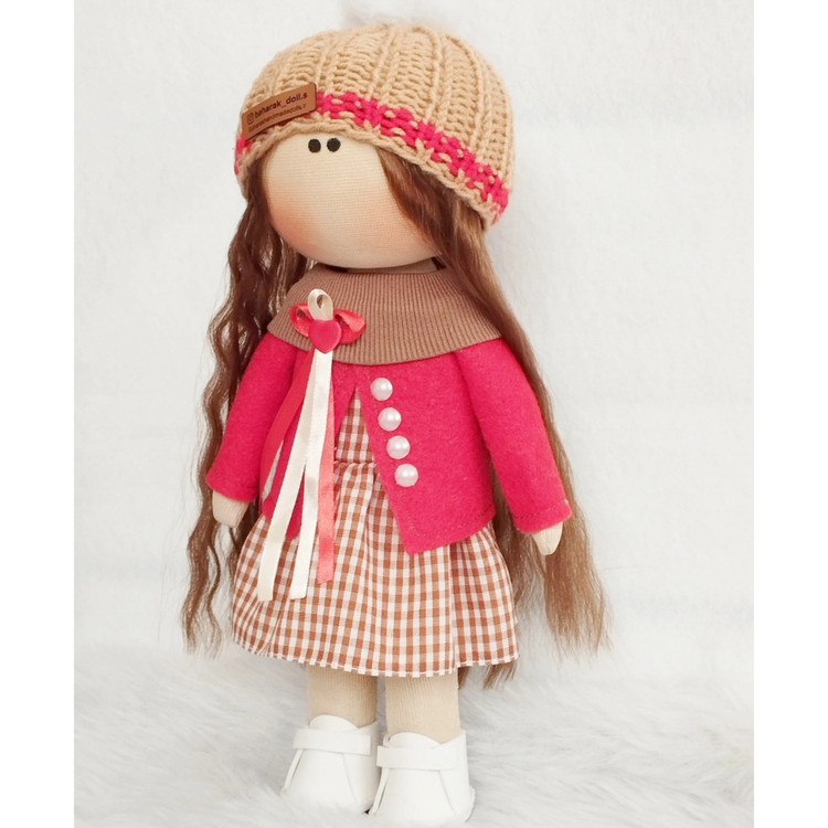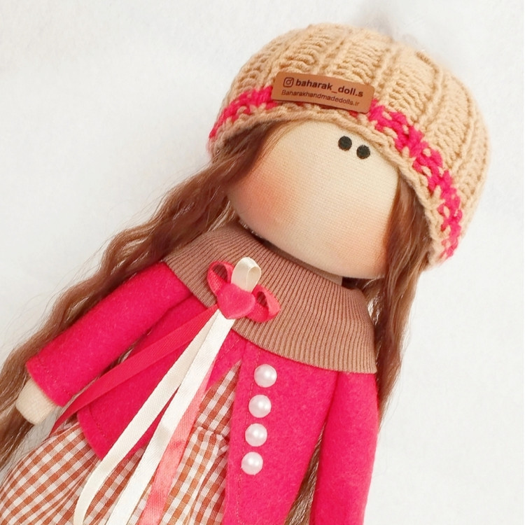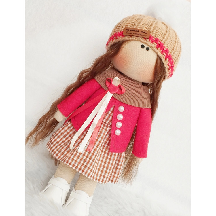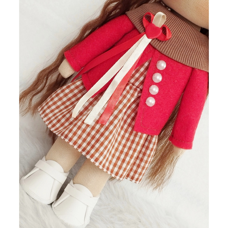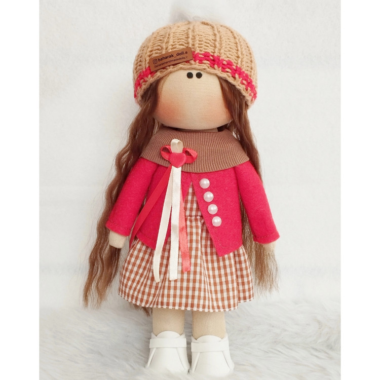🤎عروسک روسی دخترانه30سانتی سرچرخشی پیرهن قهوه ای کت قرمز❤️(ارسال رایگان)