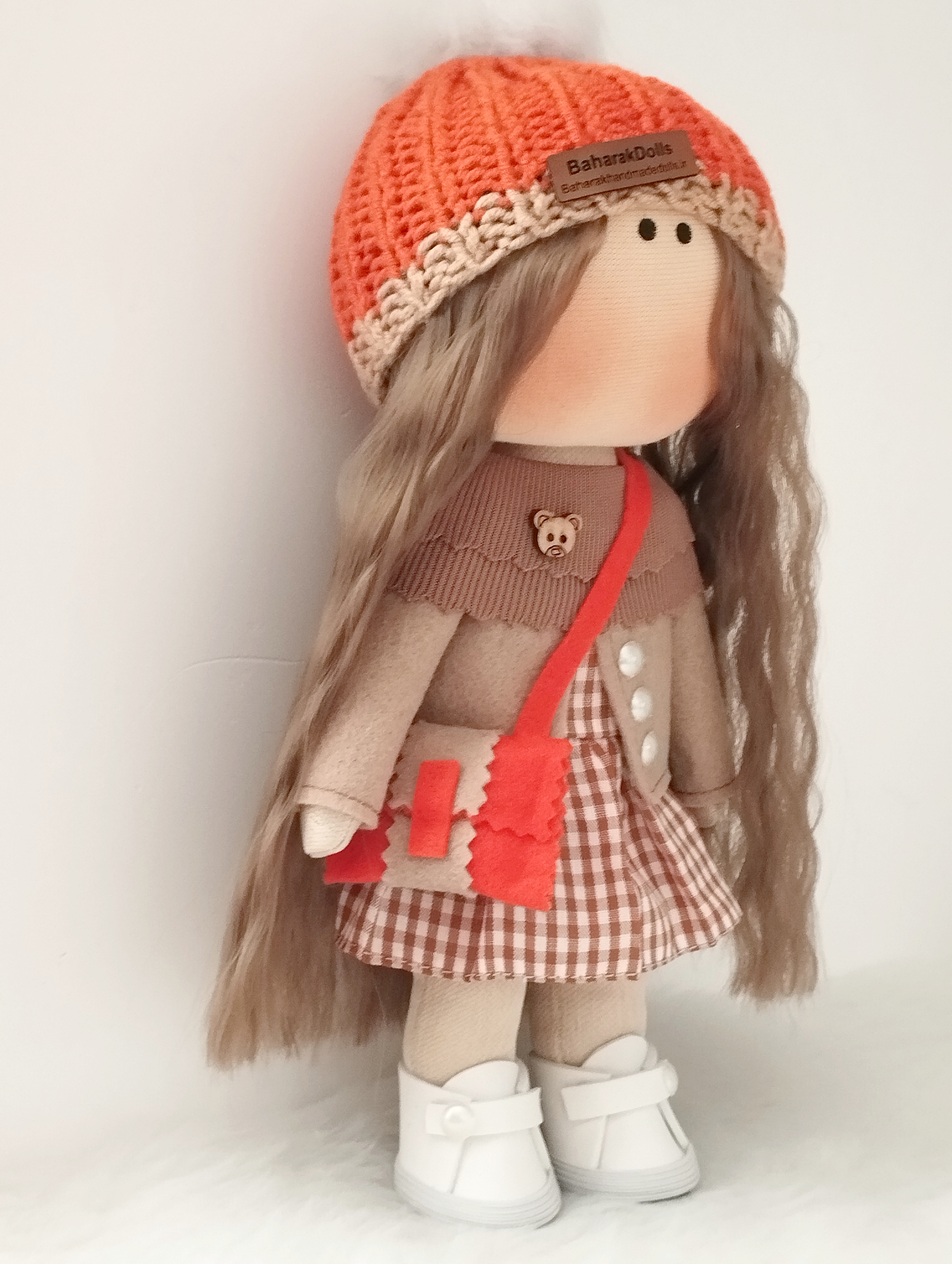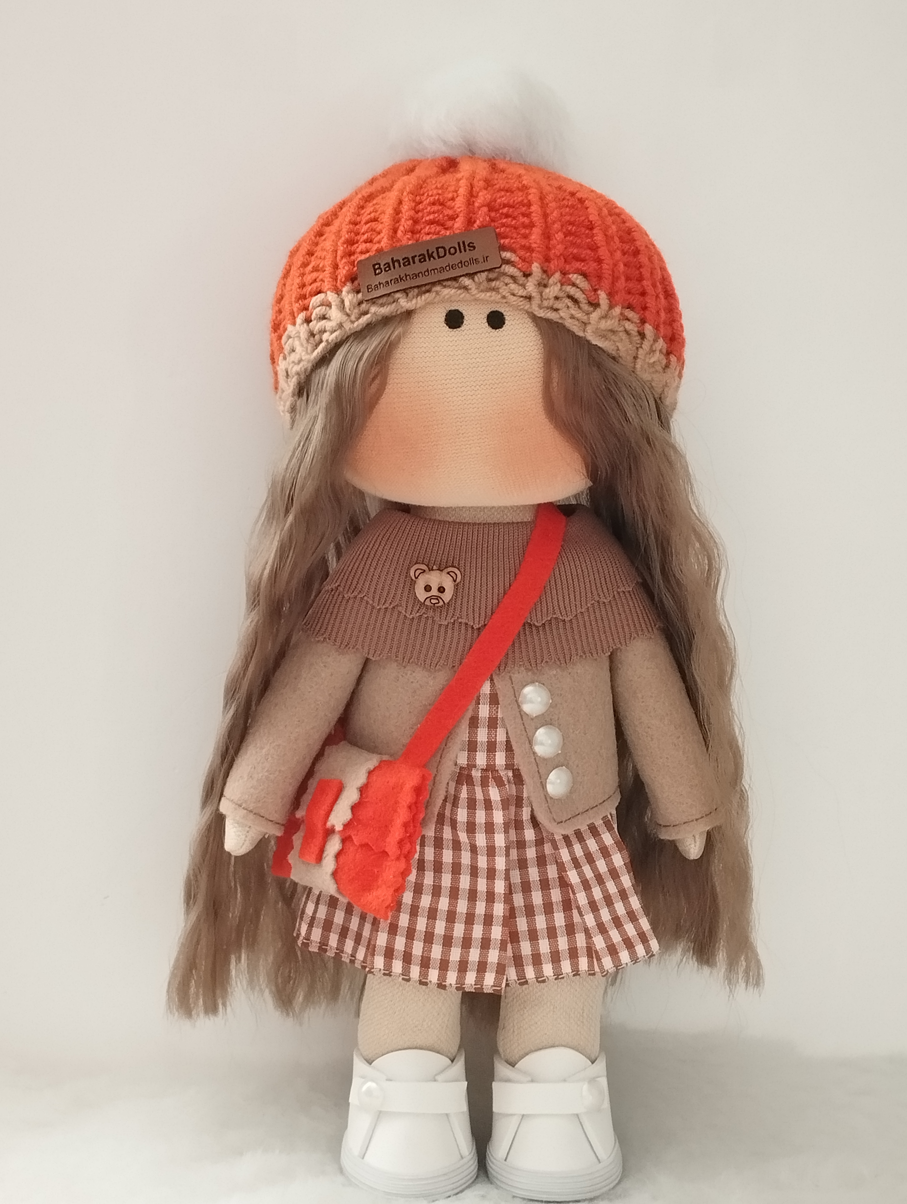 🤎عروسک روسی دخترانه سرچرخشی پیراهن قهوه ای کت کرمی🧡(ارسال رایگان)