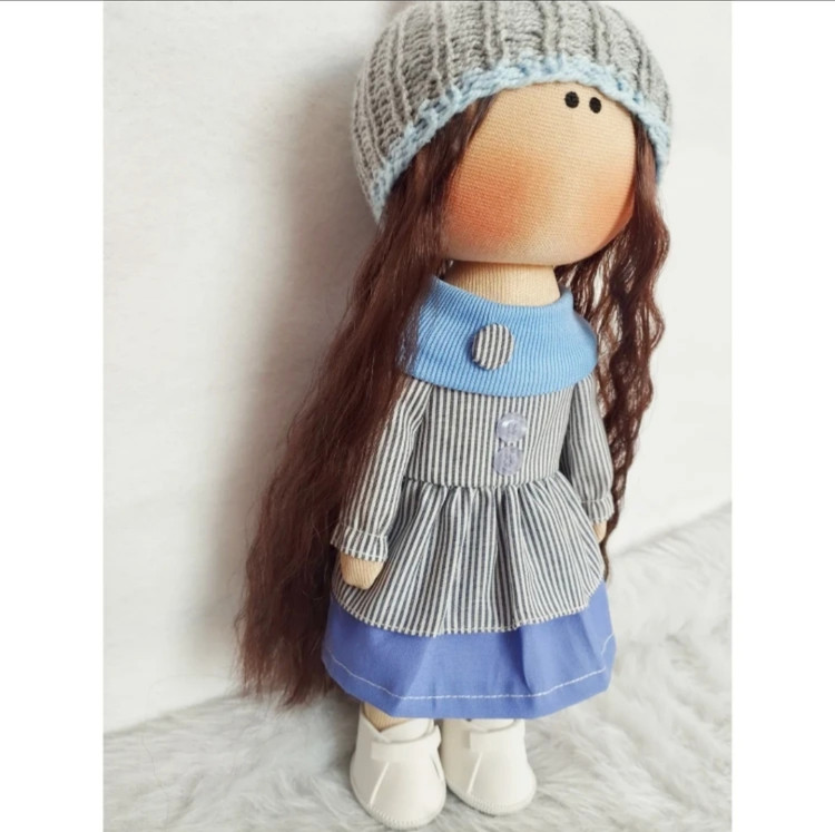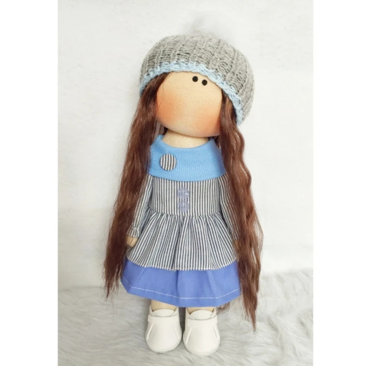 🩶عروسک روسی دخترانه30سانتی سرچرخشی زیبا مدل طوسی آبی🩵(ارسال رایگان)