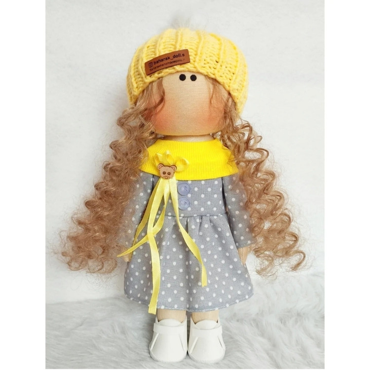 💛عروسک روسی سرچرخشی دخترانه30سانتی با پیراهن خالدار طوسی🩶(ارسال رایگان)