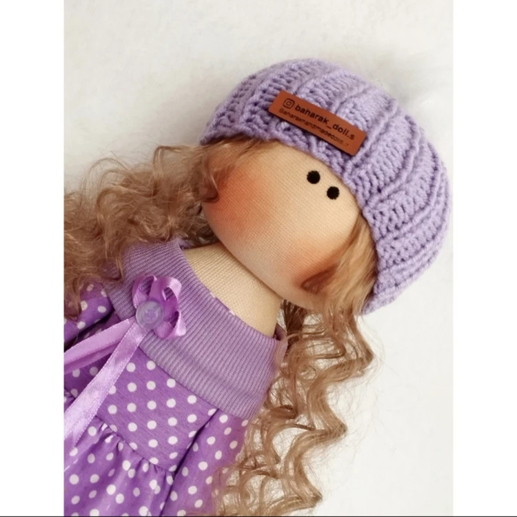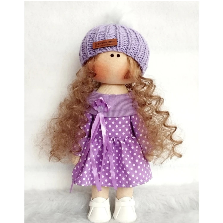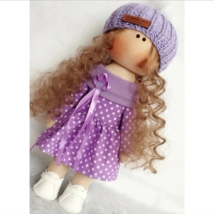 💜عروسک روسی دخترانه 30سانتی با پیراهن وکلاه بنفش خالدار💜(ارسال رایگان)