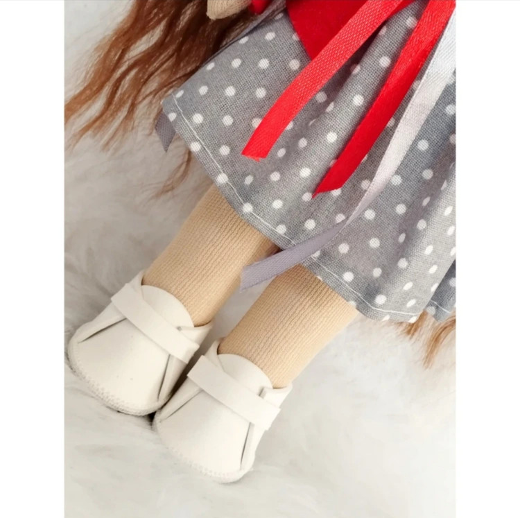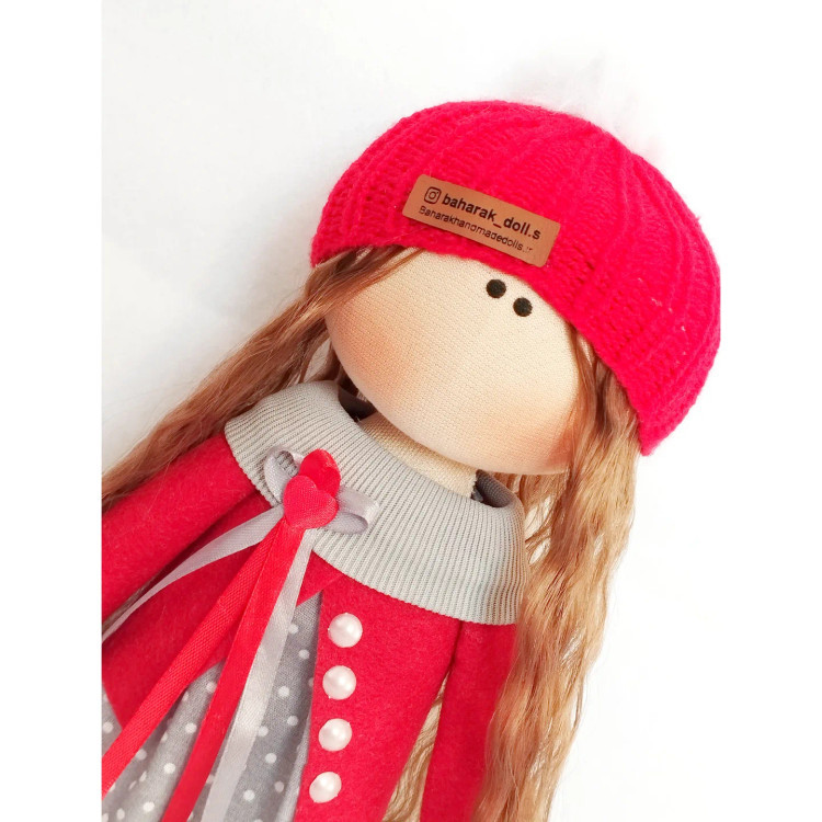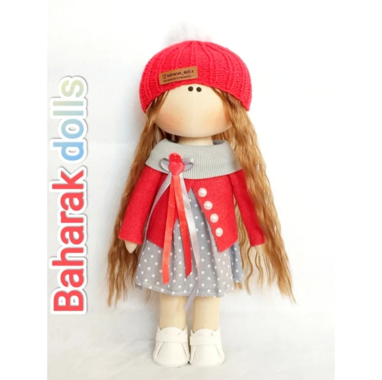 ❤️عروسک روسی سرچرخشی 30سانتی دخترانه طرح کت دار طوسی قرمز🩶(ارسال رایگان)