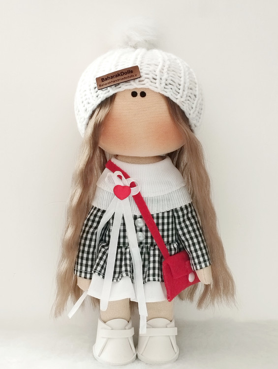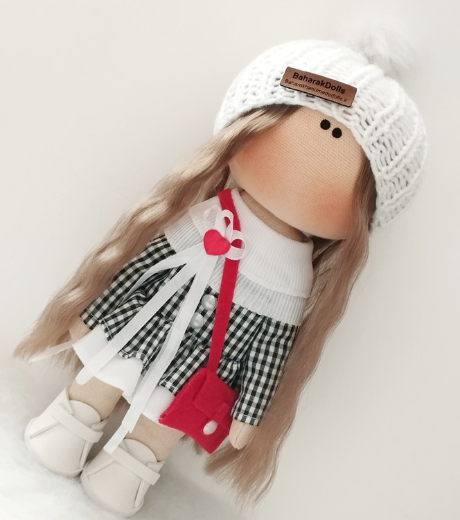 🖤عروسک روسی دخترانه سرچرخشی مدل پیراهن چهارخونه مشکی سفید🤍(ارسال رایگان)